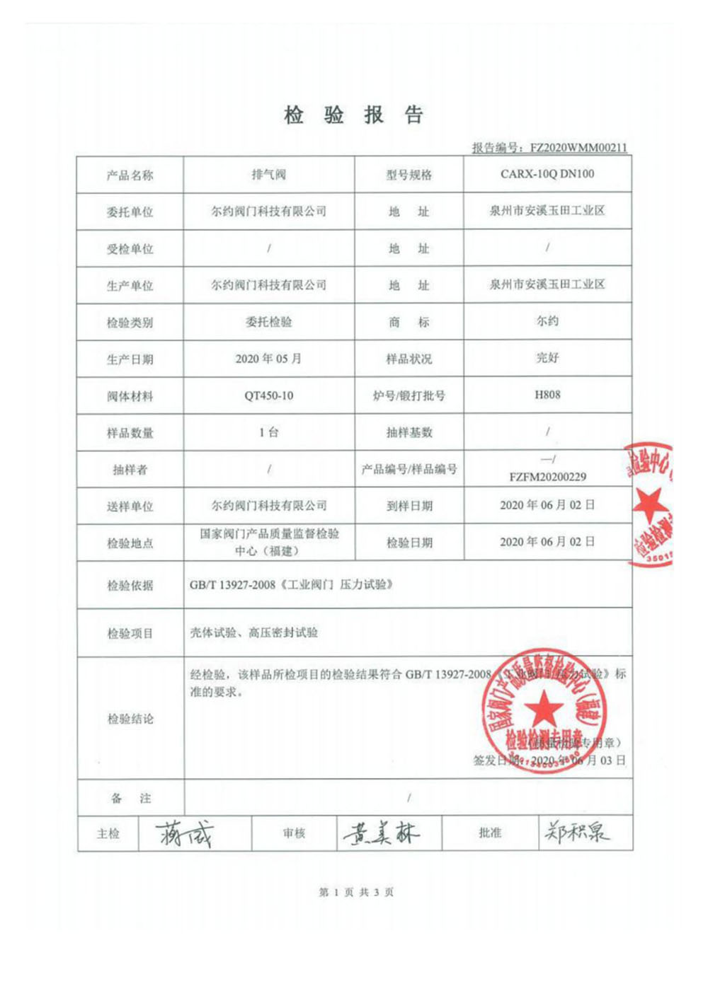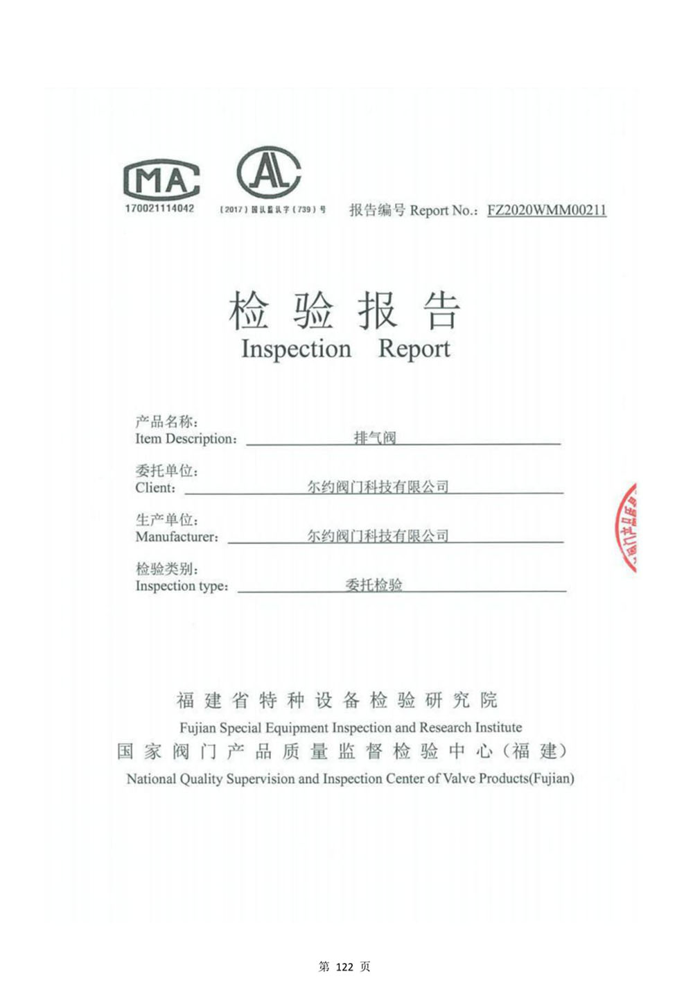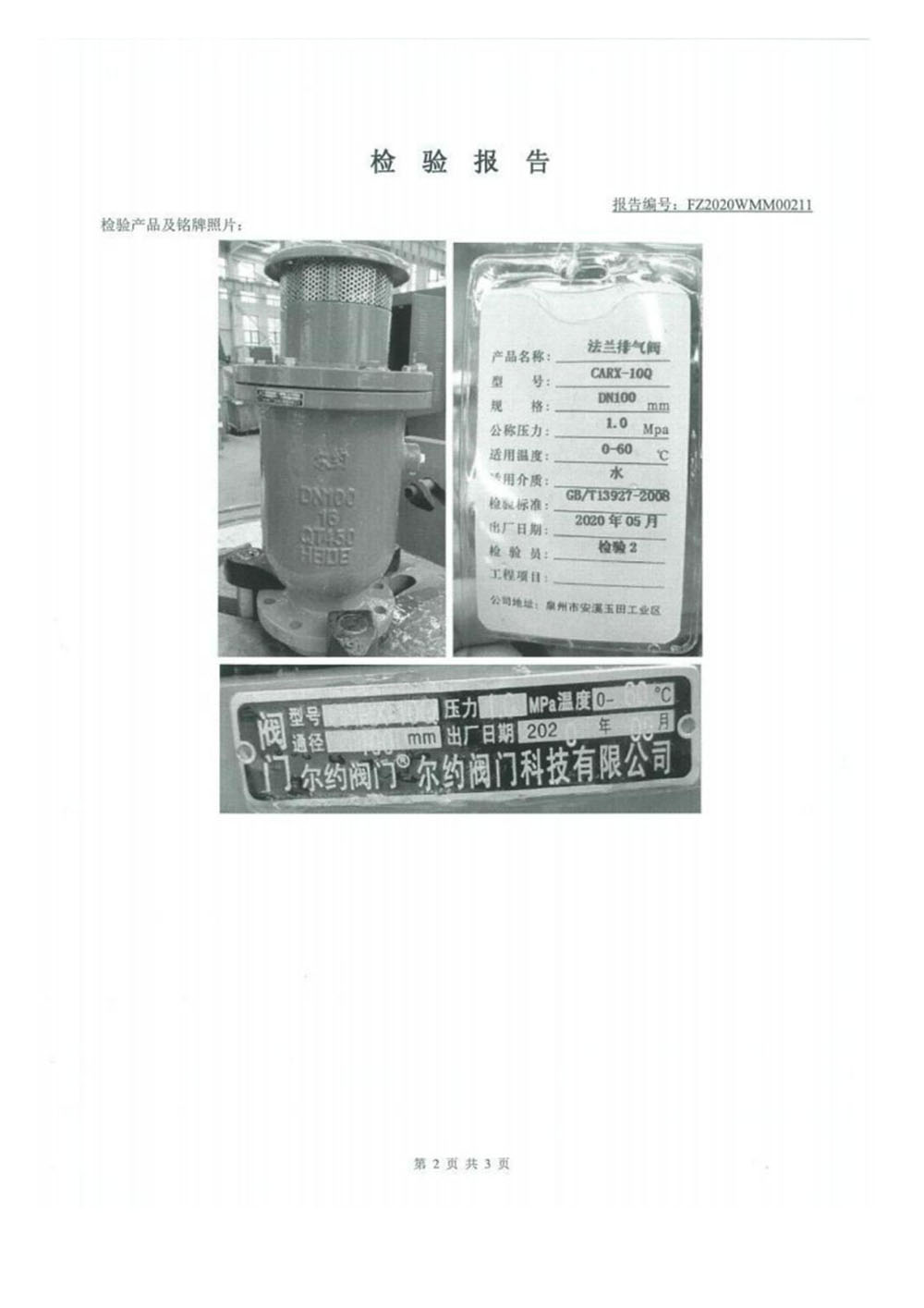 排氣閥檢驗(yàn)報(bào)告