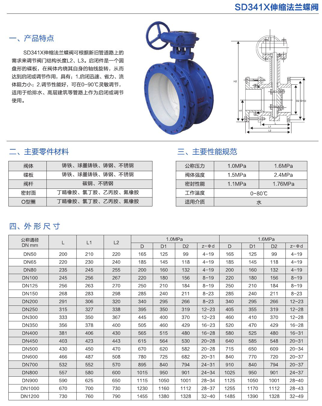 SD341X伸縮法蘭蝶閥可根據新舊管道路上的需求來調節閥門結構長度L2、L3。